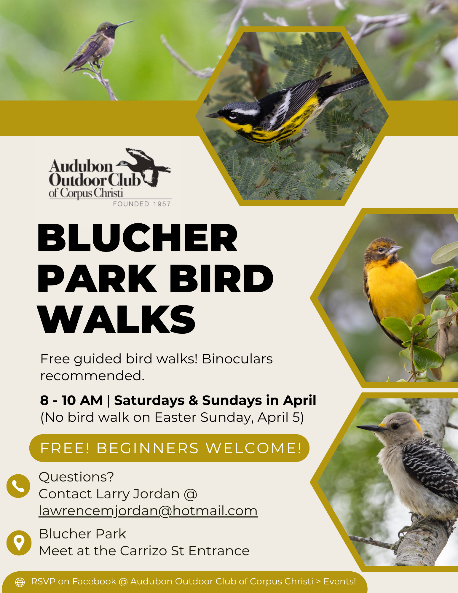 Join us each Saturday and Sunday in April for a bird walk at Blucher Park!